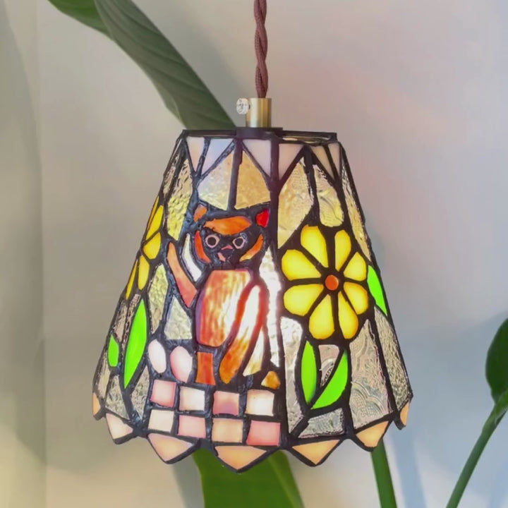 Add warmth, charm, and artistry to your space with this Tiffany Style Stained Glass Pendant Light featuring a delightful bear and blooming flowers. Each shade is handmade from colorful stained glass pieces, creating a unique glow that transforms your room when lit. Perfect for adding a vintage touch to your bedroom, kitchen, dining area, hallway, café, or bar.