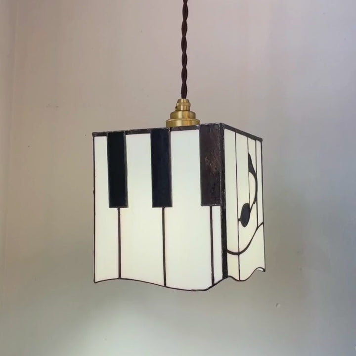 Add an artistic and musical statement to your space with this handcrafted square stained glass pendant light. Inspired by piano keys and a flowing music note, this unique hanging lamp combines clean geometric lines with soft warm lighting, making it a beautiful accent for music lovers, piano rooms, bedrooms, reading corners, kitchen islands, cafés, and creative interiors.